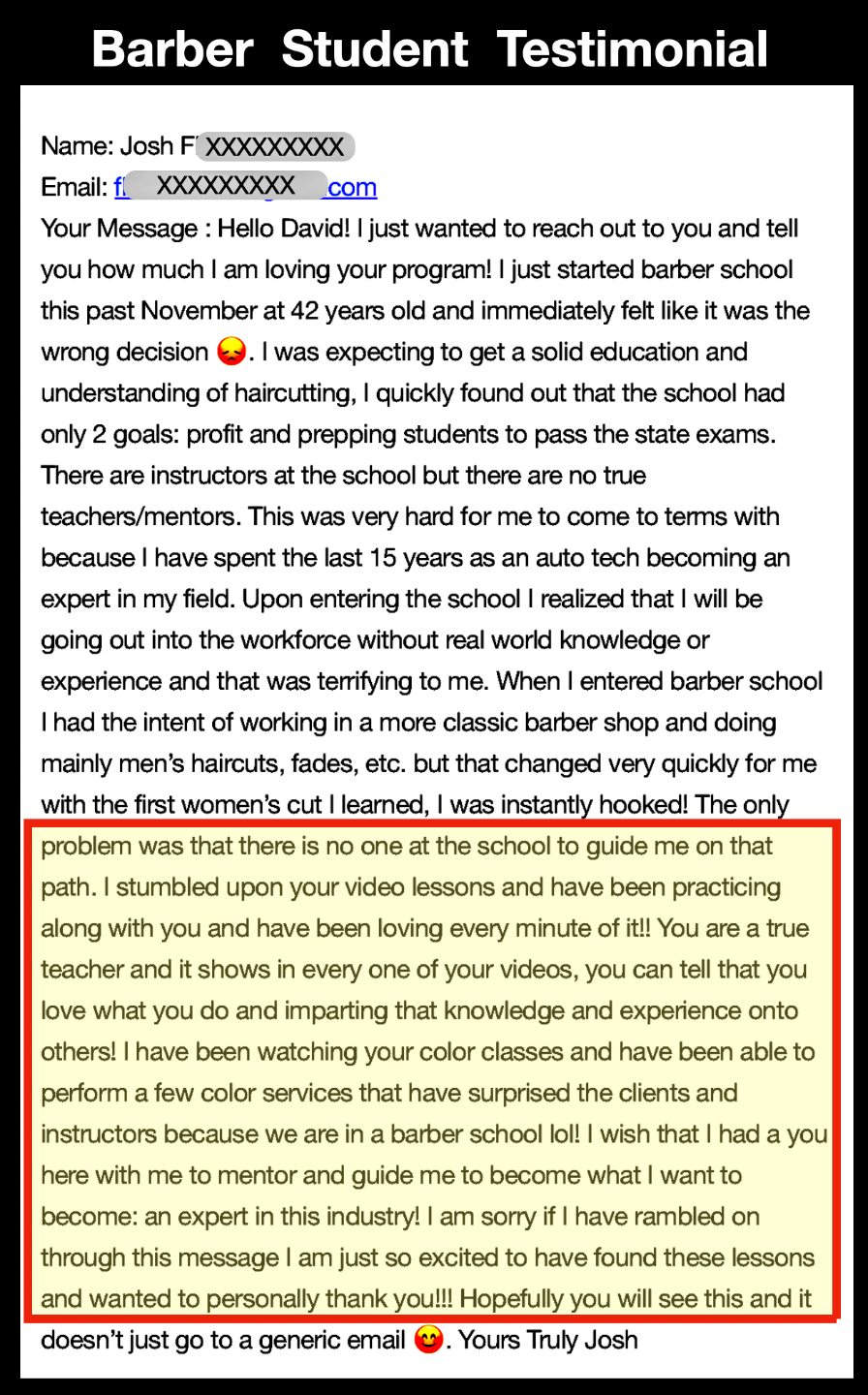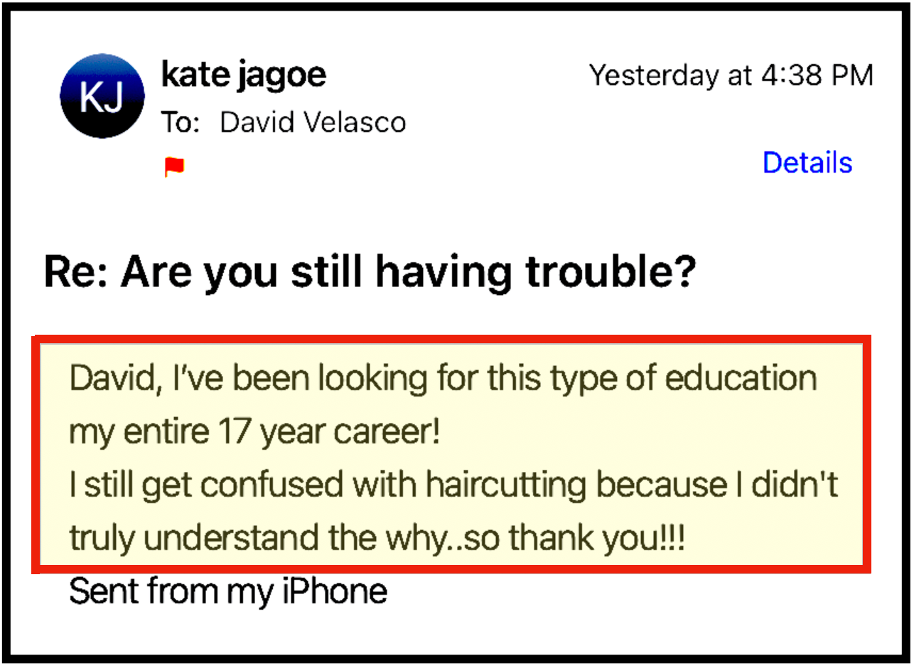 I have been telling ALL my hairdresser peers about your series and encouraging them to contact you so that they may have these amazing tools in their arsenal.